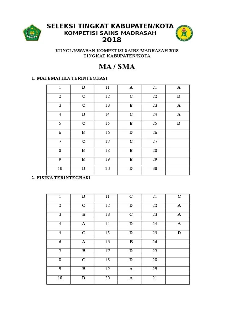 Ilmuguru.org adalah portal informasi dunia pendidikan berupa silabus, rpp 1 lembar, soal dan kunci jawaban serta perangkat pembelajaran . Di bawah ini adalah download pdf soal dan kunci jawaban kompetisi sains madrasah (ksm) tahun 2020 tingkat kabupaten/kota jenjang mi, mts dan . Kumpulan soal dan jawaban ksm jenjang mi, mts dan ma tingkat . Download soal dan kunci jawaban ksm ma matematika terintegrasi tahun 2019 tingkat kabupaten kota. Yang dikompetisikan pada ksm (kompetisi sains madrasah) untuk tingkat mts ada 3 mata pelajaran, yaitu ipa, matematika, dan ips.